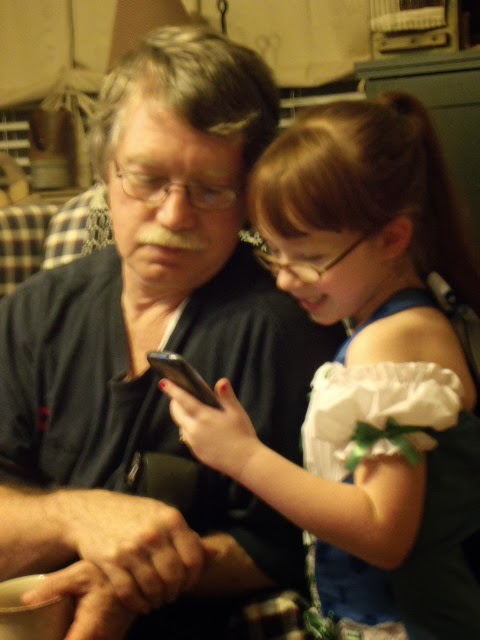 While he was updating things around the house, he decided we needed new phones also. What has gotten into this man?? And he also bought them while I was sick. Think he does some good shopping on his own, right? We now have smart phones and can't get use to them. Yes, we are from the old school. Change don't come easy for us. Darbee Rae is trying to help Papa learn all about his. And she knows what she is doing, too.